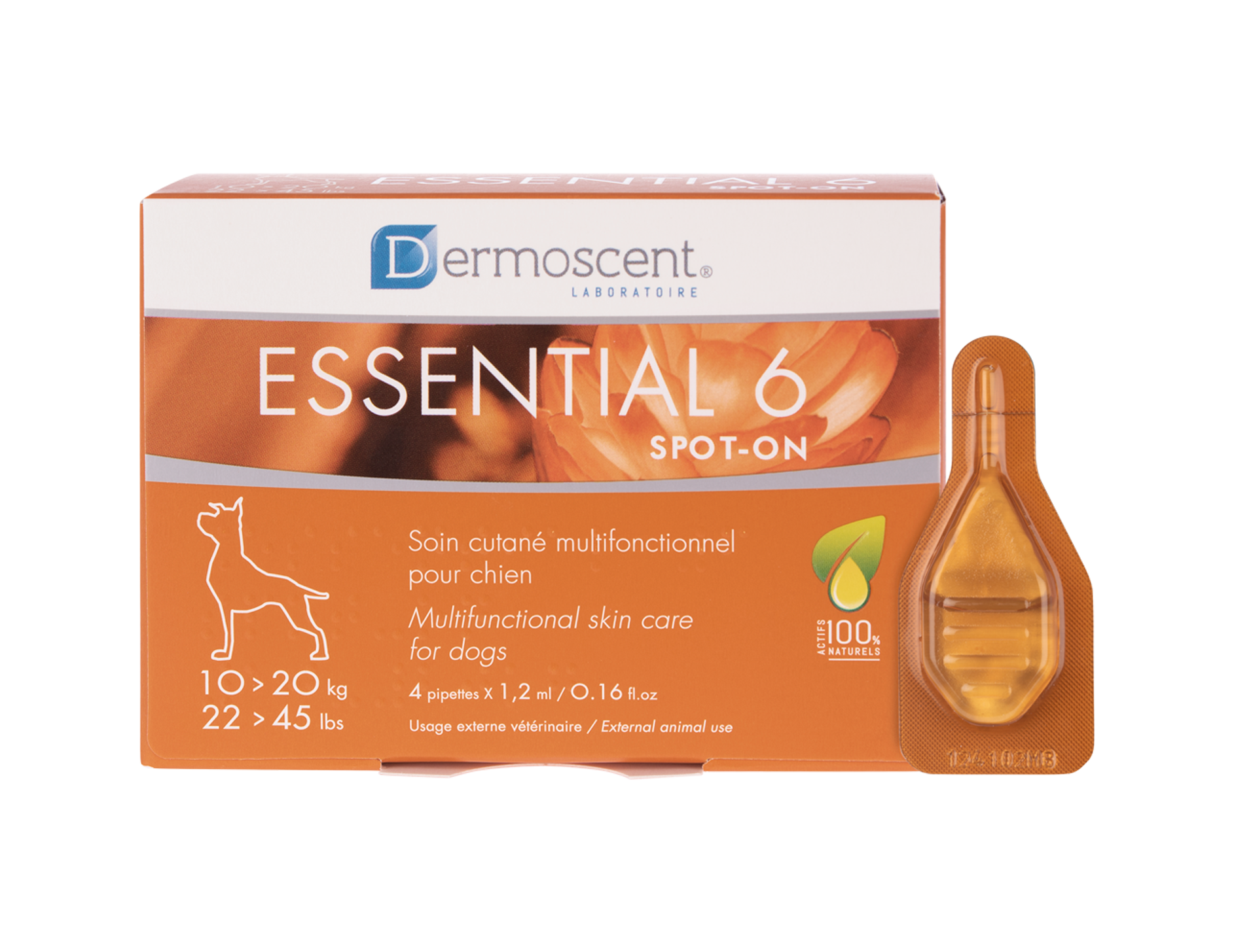 Essential 6® spot-on er den første patenterede dermo-care spot-on, der giver en enkel og effektiv løsning på hudlidelser hos hunde, katte og små pattedyr som kaniner, fritter og marsvin.